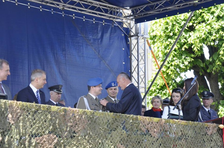 Odznaczają ppłk Jalowskiego, Starosta Gryficki podkreślił także, że jest bardzo zadowolony z tego powodu, że wojsko zostaje w Trzebiatowie oraz, że wojsku należy się szczególny szacunek, ponieważ historia niejednokrotnie pokazała, że w trudnych chwilach to właśnie na wojsku można polegać.