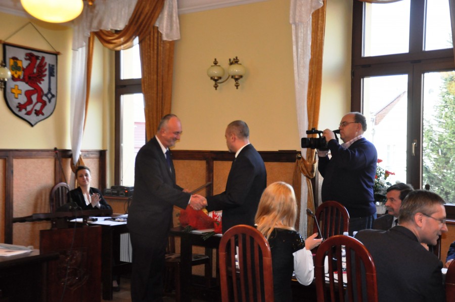 Kończąc przemówienie Starosta złożył serdeczne i szczere życzenia Burmistrzowi Gminy Trzebiatów, który został wybrany na drugą kadencję głosami i wolą tych, którzy są najważniejsi, głosami mieszkańców gminy Trzebiatów.