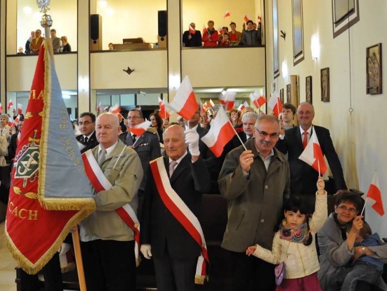 Po mszy z kościoła wyprowadzone zostały sztandary, a delegacje złożyły kwiaty pod tablicą poświęconą pamięci Sybiraków i Kombatantów znajdującą się przy grocie oraz pod pomnikiem upamiętniającym kanonizację Jana Pawła II.