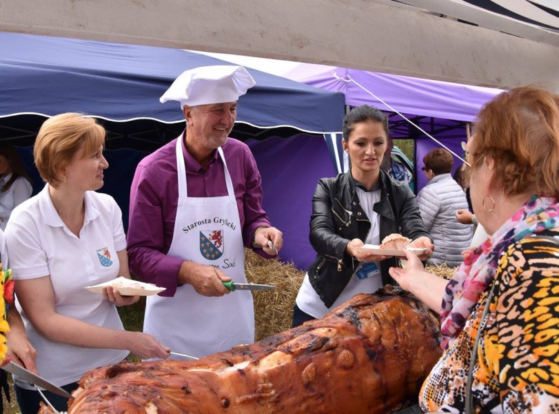 Dnia 16 września br. na placu przy Szkole Podstawowej nr 4 w Gryficach odbyły się Dożynki Gminy Gryfice. Wśród wielu stoisk reprezentujących poszczególnie sołectwa i lokalne miejscowości, znalazło się stoisko Powiatu Gryfickiego, które jak zawsze cieszyło się dużym zainteresowaniem. Prócz licznych, typowo wiejskich przysmaków i słodkości, odwiedzający mogli skosztować pieczonego prosiaka tradycyjnie serwowanego przez Starostę Powiatu Gryfickiego - Kazimierza Sacia. Tegoroczne Święto Plonów obfitowało nie tylko w dobrą strawę, ale także w bogaty program artystyczny. Na uczestników czekały zespoły muzyczne, zespoły taneczne, kabaret oraz występ gwiazdy wieczoru - Sumptuastic. Dożynki - zgodnie ze swoją tradycją - były więc nie tylko podziękowaniem za dobre zbiory, lecz również okazją do wspaniałej zabawy.