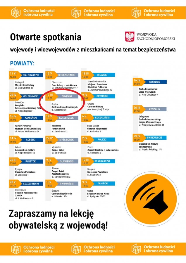 Bartosz Brożyński - Wicewojewoda Zachodniopomorski zaprasza mieszkańców powiatu gryfickiego na otwartą lekcję obywatelską poświęconą naszemu wspólnemu bezpieczeństwu, ochronie ludności i obronie cywilnej.