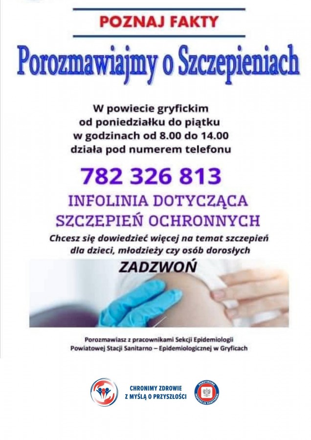 Dodatkowo w powiecie gryfickim działa całoroczna infolinia „Porozmawiajmy o szczepieniach”, gdzie pracownicy Inspekcji Sanitarnej udzielają rzetelnych i wiarygodnych informacji.