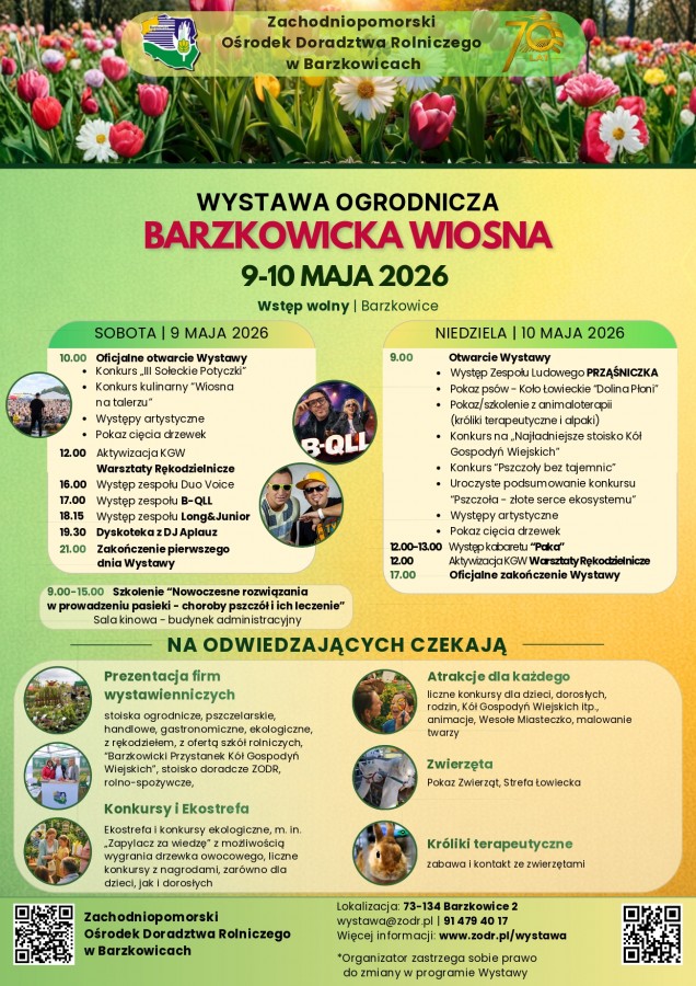 Zachodniopomorski Ośrodek Doradztwa Rolniczego w Barzkowicach serdecznie zaprasza na Wystawę Ogrodniczą "Barzkowicka Wiosna".
